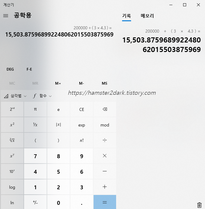 그 외에도 많은 기능이 있는 거 같은데요. 저는 공학용 계산 정도로만 사용해서 그런가 이 정도만 알아도 충분하더군요.
