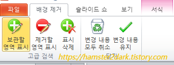 표시 삭제는 보관할 영역 표시, 제거할 영역 표시한 부분을 부분적으로 삭제할 수 있습니다.