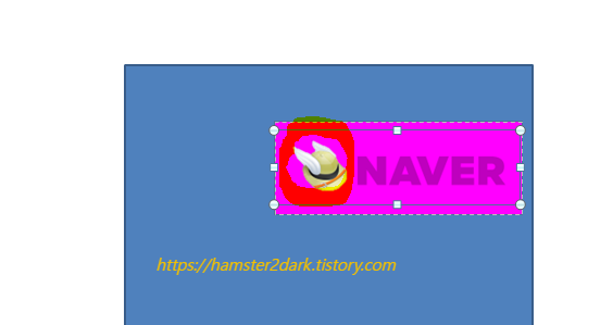 사각형을 확대하면 다음과 같이 네이버 모자 흰색 날개 이미지가 깨끗하게 남는 것을 확인할 수 있습니다. 다만 NAVER 문구는 여전히 삭제되는 영역에 포함되어있네요. 이제 상단의 도구를 사용할 차례입니다.