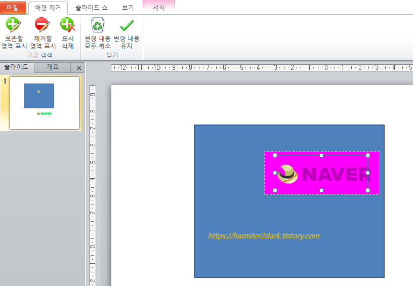 차선책으로 사용할 수 있는 건 PPT(파워포인트)의 배경 삭제입니다.
