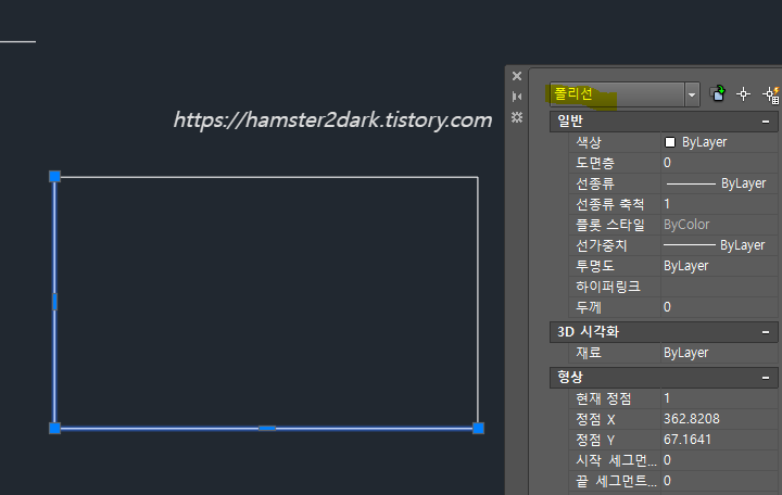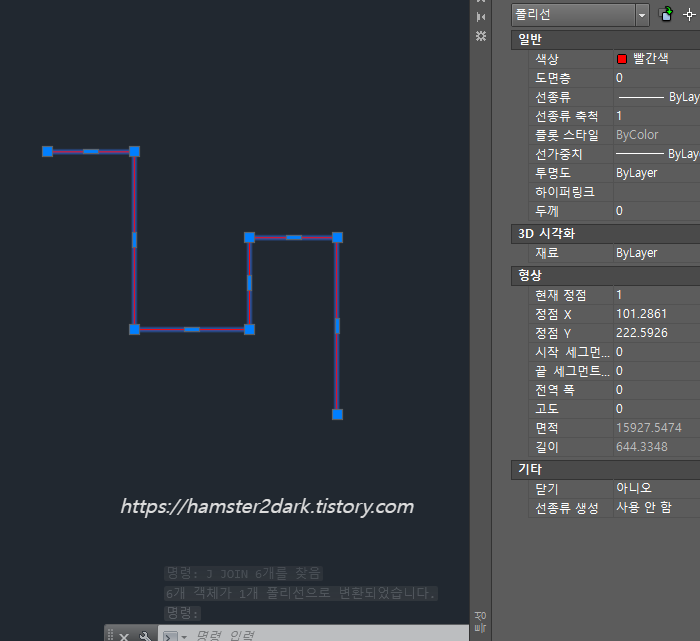 좌측 수직선과 join 명령어를 통해 합쳐 폴리선으로 만들었습니다.