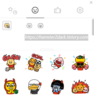 타인이 쓴 이모티콘을 눌러서 갈 수도 있고 이모티콘 샵에서도 갈 수 있습니다.