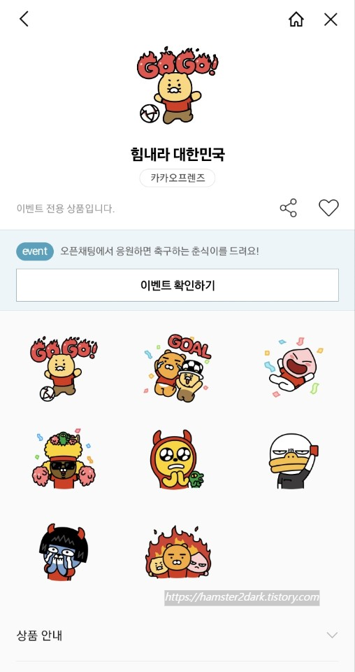 5. 월드컵 춘식 이모티콘 사용하기 (힘내라 대한민국)