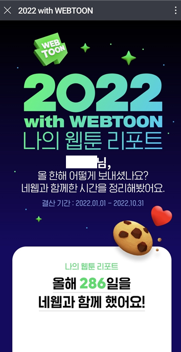 2022년 1월 1일부터 2022년 10월 31일까지의 개인의 웹툰 리포트를 발행해주고 있는 네이버 웹툰!