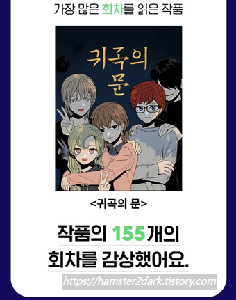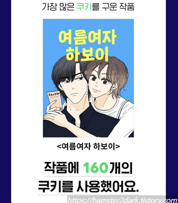 그리고 가장 많은 주차를 열람한 작품, 가장 많은 회차를 읽은 작품, 가장 많은 쿠키를 구운 작품을 소개해준다.