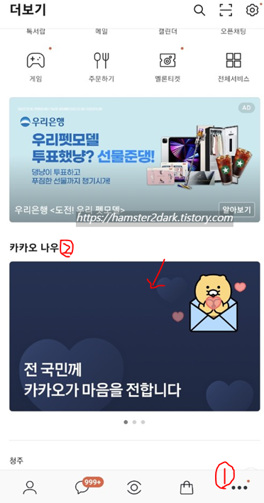 1-2. 설정에서 '카카오 나우'의 '전 국민께 카카오가 마음을 전합니다' 배너 클릭