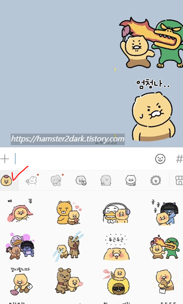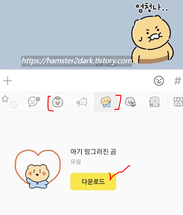 3. 채팅창으로 돌아가서 하단의 이모티콘에서 다운로드하여 이용하면 끝!