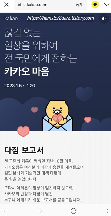 위 화면(다짐 보고서 어쩌고저쩌고)에서 스크롤을 내리면... (이번 먹통 사건의 원인부터 앞으로의 대책까지 적혀있다.)