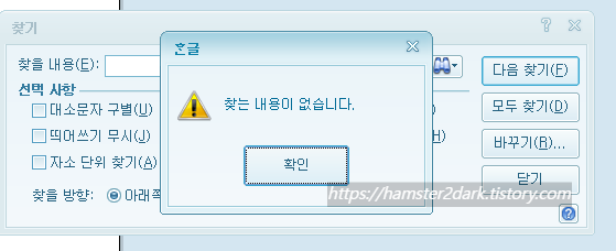 하지만... 찾을 내용이 분명히 있음에도 '찾을 내용이 없습니다.'라고 뜨는 경우가 있습니다.