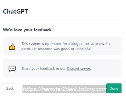 피드백도 해달라 합니다. 대화에 따봉표시 있는데 그것이 훈련에 도움이 되는 모양입니다. (당연하겠지...)