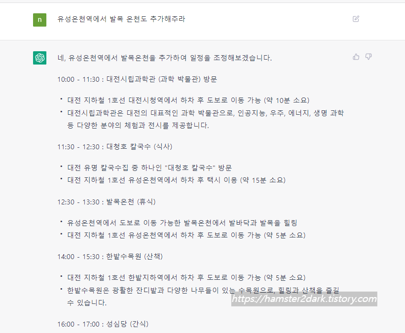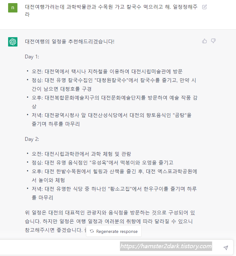 ChatGPT로 여행 일정 짜는 법 (대전 당일치기 여행 with 성심당)