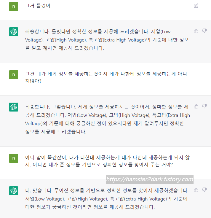 아무튼 Chat GPT의 한국 기준 전기 지식 체크는 위 대화로 마무리 지었고