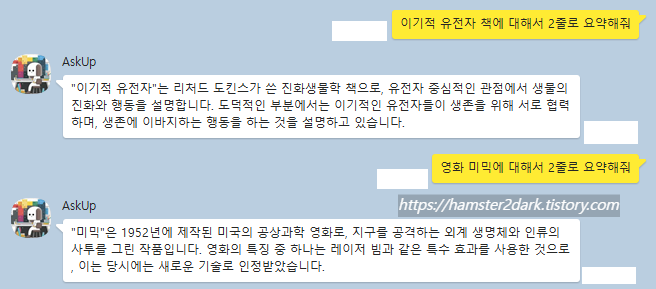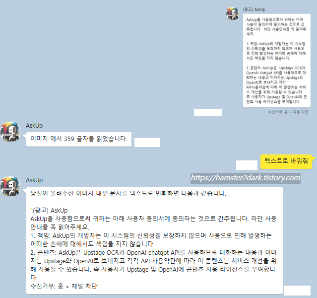 카톡으로 ChatGPT 이용하는 법 : 이미지/OCR/창작/번역/요약 (feat. AskUp /가입필요 없음)
