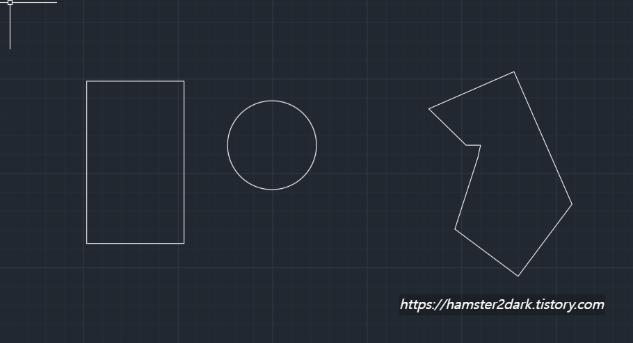 우선 해치(hatch)를 적용하기 위해서는 폐곡선의 형태로 만들어줘야 합니다. 쉽게 말하자면 구멍이 뚫린데 없이 막혀있는 공간에 대해 해치 색상, 패턴을 적용할 수 있습니다. 예를 들면 네모, 원 같은 도형에서 적용가능 합니다. 꼭 이런 정형화된 형태가 아니어도 가능합니다.