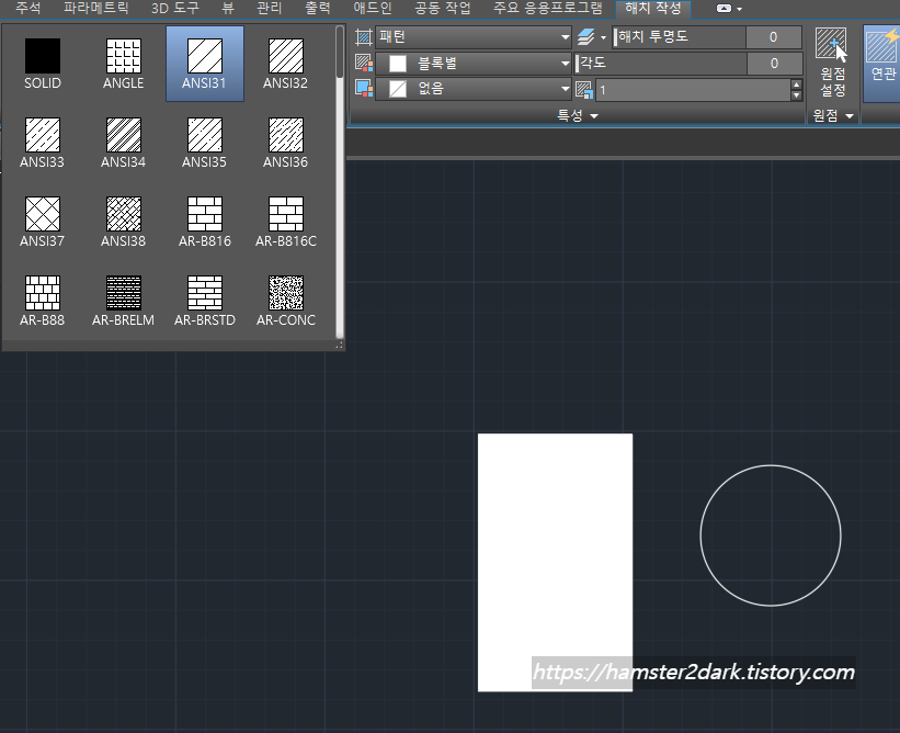 해치 색상 채우기한 객체에 투명도를 적용하는 방법에 대한 글을 포스팅한 적이 있었죠. 이번에는 해치의 '패턴'에 대하여 작성해보고자 합니다.