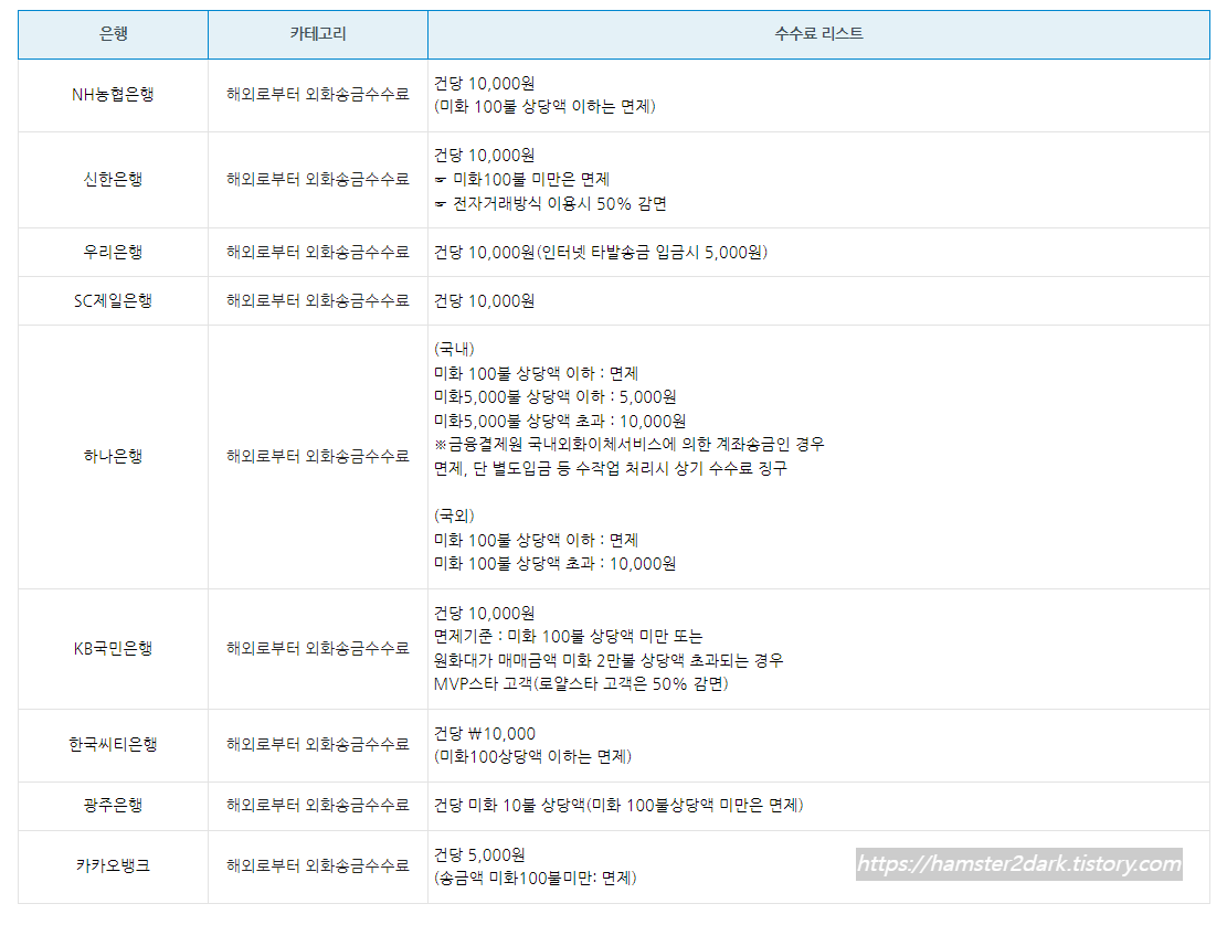 이 참에 찐 외화통장으로 바꿔보려는데 웬만하면 다 총수수료가 15,000원(10,000+5,000원) 정도이더라. ㅠㅠ