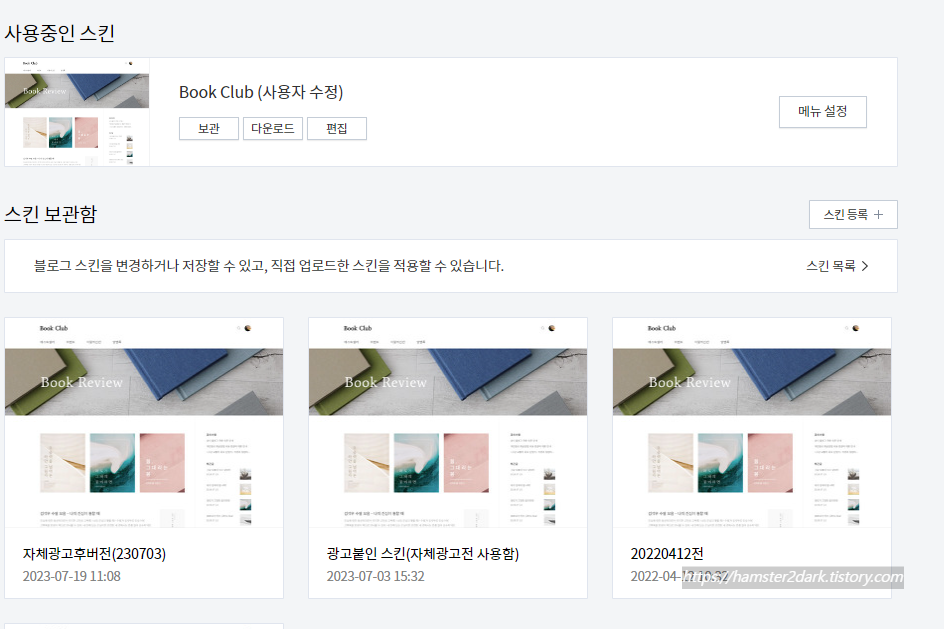 참고로 변경할 스킨에 커서를 대시면 '적용' 버튼이 생깁니다.