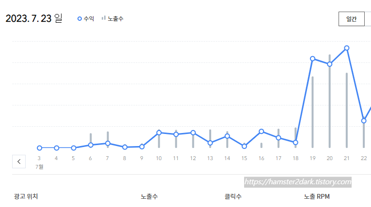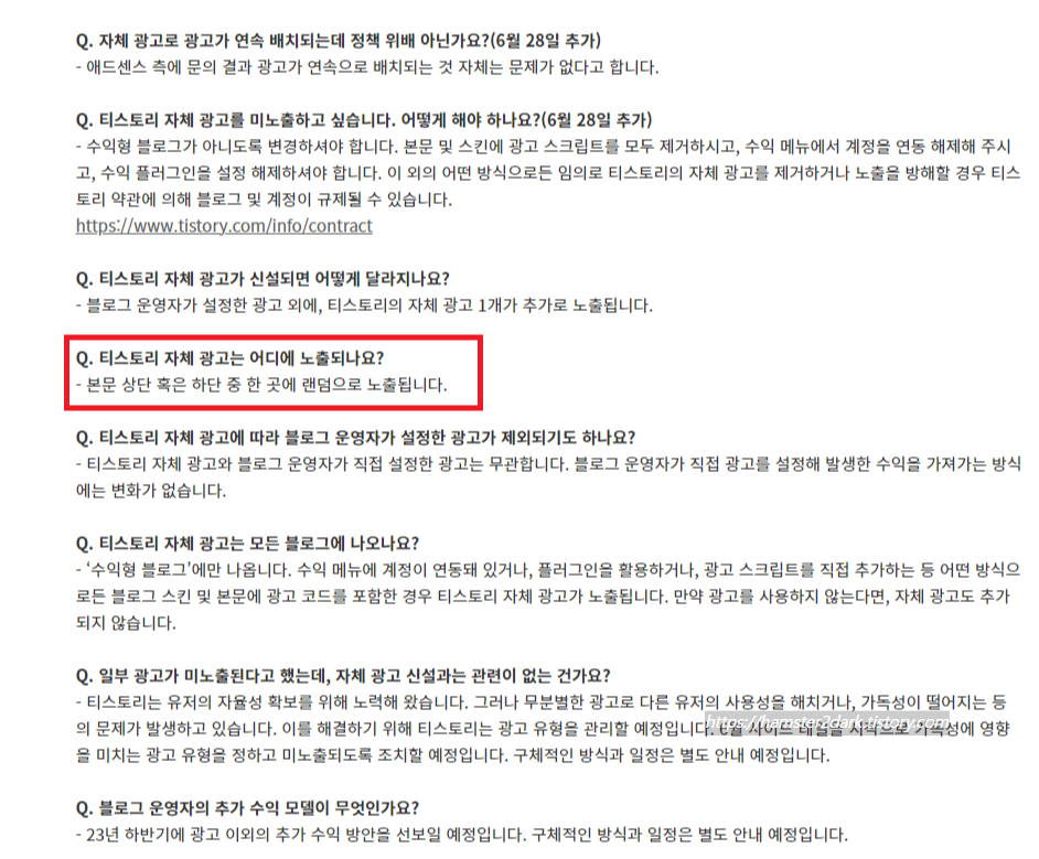 2023.07.03 - [티스토리&애드센스 탐험기] - 구글 애드센스 광고 게재 제한과 6월 27일 티스토리 자체 광고 신설(Feat. 수입 0) +23.07.19내용추가