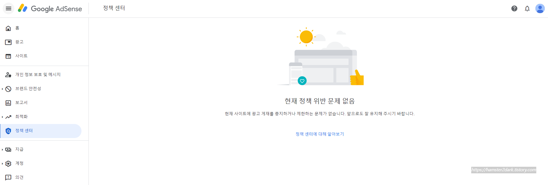 어쩐지 이 이후, 구글 애드센스의 광고 게재 제한 조치가 이뤄짐에 따라 광고 수익이 0이 되었습니다.