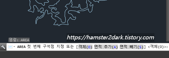 먼저 area를 입력하면 객체, 면적추가, 면적 빼기 중에서 선택하면 되는데요. 객체를 선택하기 위해 'o'를 입력합니다.