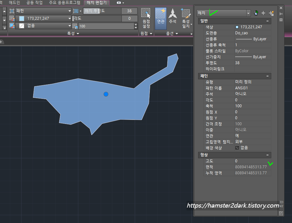 캐드(Auto CAD) : 해치(hatch) 패턴 적용 안 되는 경우 해결법/패턴 넓게-좁게 변경하기(feat. 축척) 해치 색상 채우기한 객체에 투명도를 적용하는 방법에 대한 글을 포스팅한 적이 있었죠. 이번에는