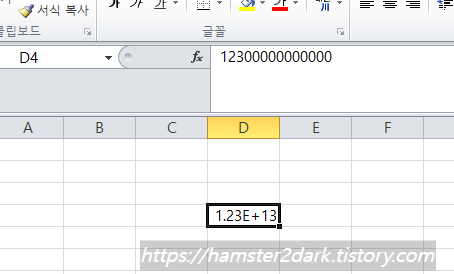 아래 사진처럼 전부 숫자로 풀어서 나온 값을 확인할 수 있습니다. (1.23E+13으로 직접 작성해도 OK)