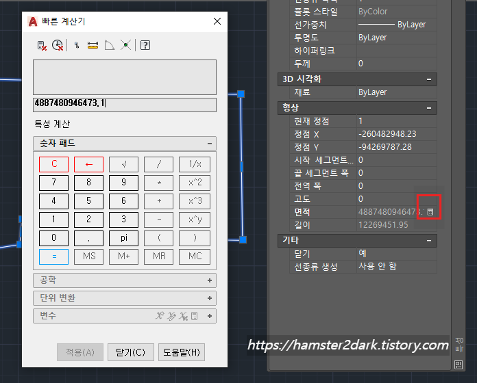 캐드(Auto CAD)에서 도형(폴리선) 면적 특성창에서 안 보이는 경우 해결법