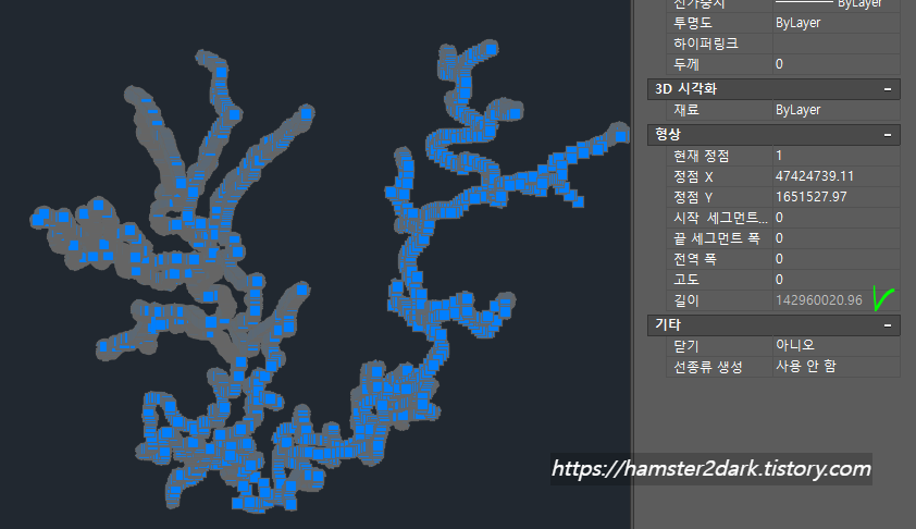 area 명령어를 이용해서인지, 폴리선이 너무 복잡해서인지 아주 세세한 mm2 면적 값은 얻지 못했지만 이 정도면 충분하죠.