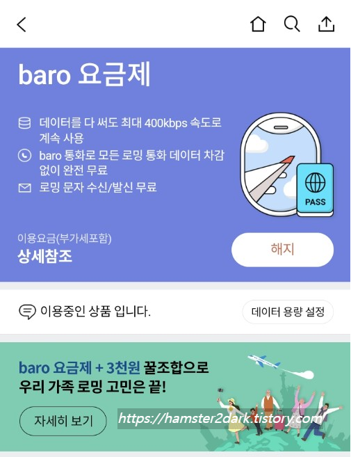 해외여행 SKT 로밍 바로(Baro) 요금제 가족요금 최신 후기 및 가입방법
