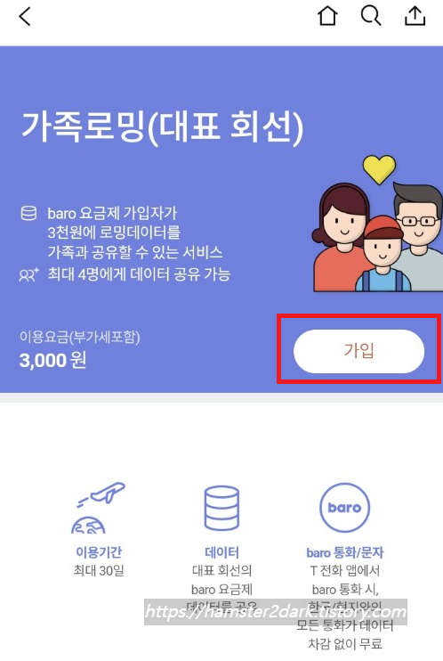 => 이때 3,000원 가족로밍 값만 추가하면 자동적으로 가족 전체 사용 가능합니다.