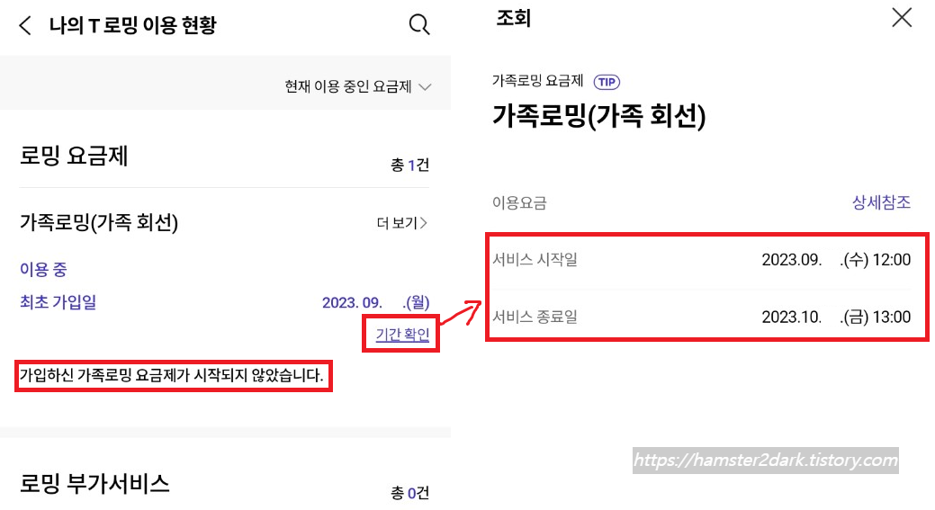 정작 "기간 확인"을 눌러보면 서비스 시작일과 종료일이 확실하게 나와있습니다.