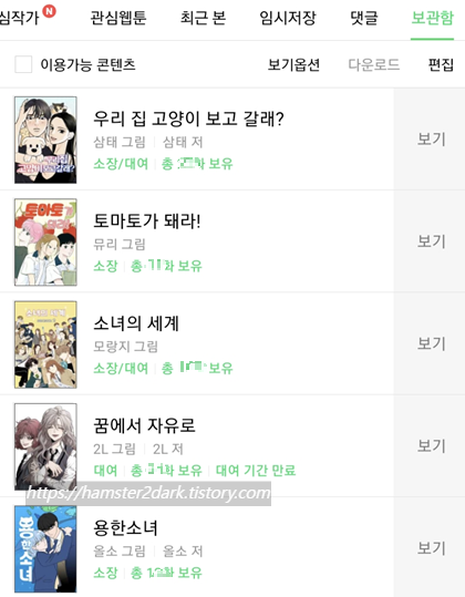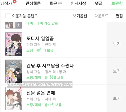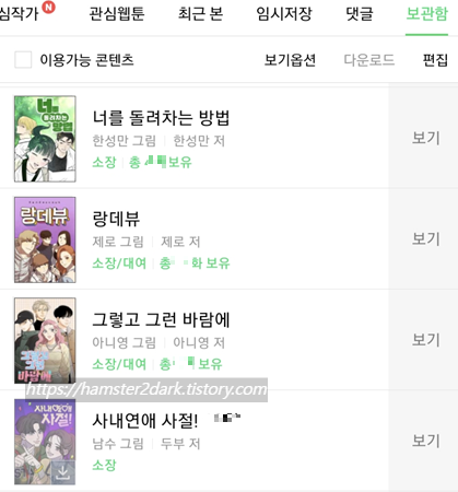 제가 재밌게 봤던 웹툰들은 참고로 하보이(요즘은 또 안 보고 있네), 랑데뷰, 가짜동맹 등..
