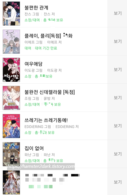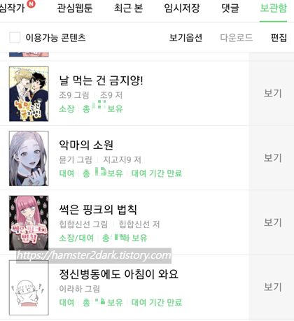 왜 나면 종종 결제 충동을 이기지 못하고 미리 보기를 다 봐버리면 그 웹툰이 너무 재밌음에도 불구하고 보는 걸 멈추게 되더라고요. 그러다가 또 쌓이면 봅니다. 문제는, 쌓이는 걸 까먹으면 그렇게 그 웹툰을 잊어버립니다.. ㅋㅋㅋ