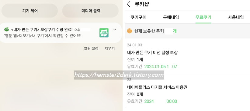 2023.08.07 - [웹툰 매일 봄] - 네이버 웹툰 무료쿠키 얻는법(5) : 내가만든 쿠키~ 미션으로 웹툰 쿠키 얻기 및 수령 후기