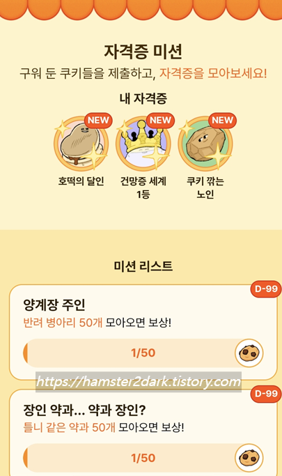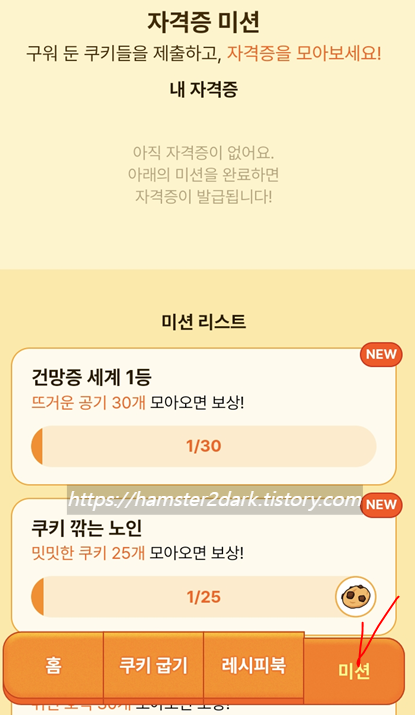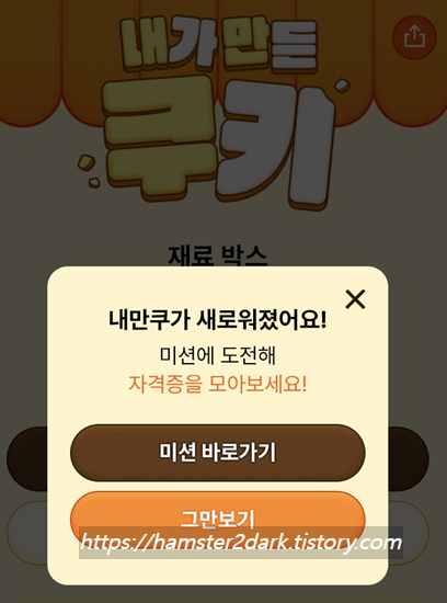 내가 만든 쿠키(이하 내만쿠)가 업데이트되었습니다. 자격증 미션이 생겼는데요.
