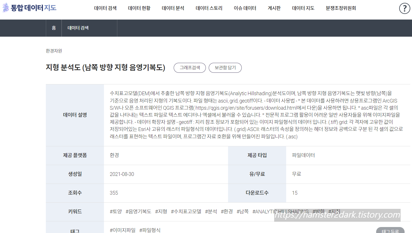 용량도 1기가 넘는 정도로 크고 데이터 사용법도 간단하지 않았습니다. 오픈소프트웨어 QGIS 프로그램을 사용하면 된다는데 이것보다 더 쉽고 적당한 게 있지 않을까 싶어 사용 포기
