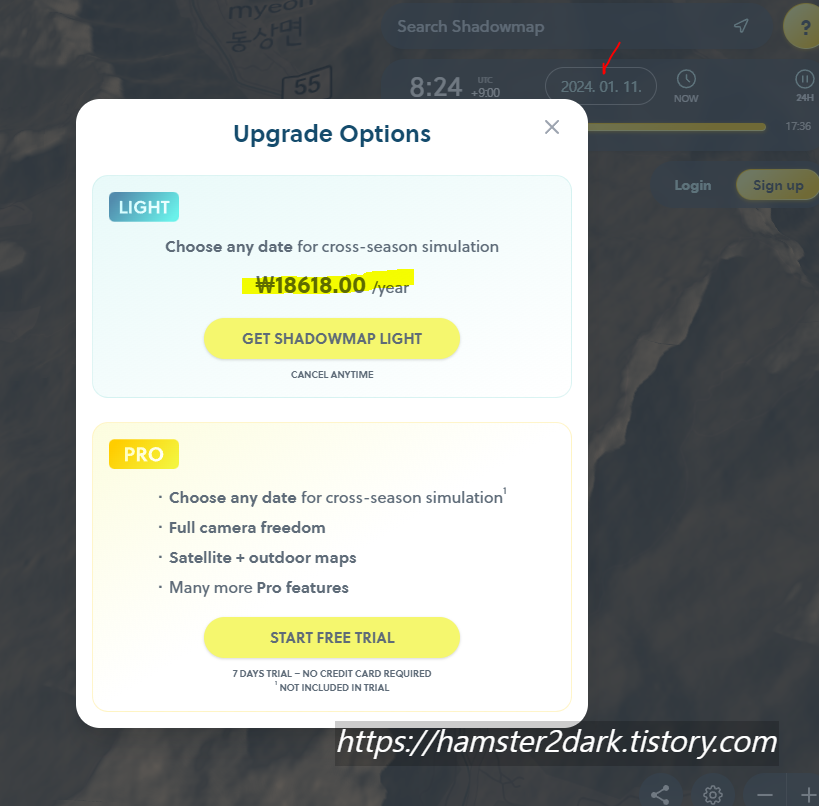 문제는 현재 날짜 기준으로만 음영을 파악해주므로... 다른 계절, 날짜는 비용을 지불해야 합니다.