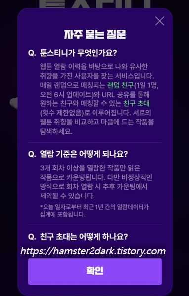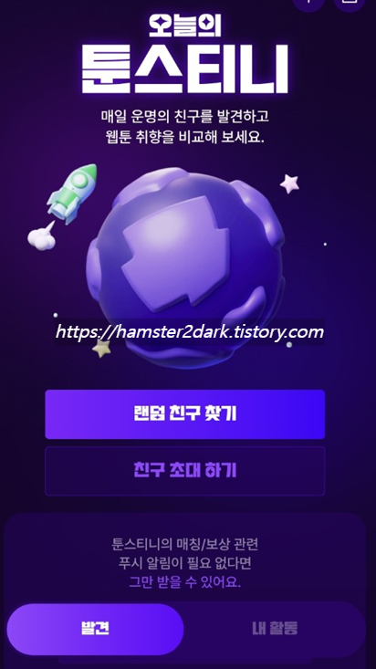 네이버 웹툰 무료쿠키 얻는 법(7) : 툰스티니, 나와 웹툰 취향 맞는 랜덤친구 만나기