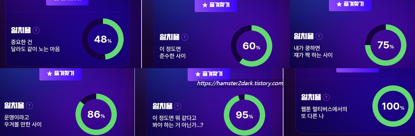 - 운명의 친구 : 서로의 일치율을 확인하고 마음에 드는 작품을 탐색하세요.