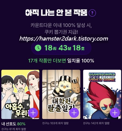 문제는 100% 달성하기 위해서 친구가 읽은 웹툰은 나도 다 봐야 합니다. 게다가 친구 발견 24시간 내로 시간제한도 있습니다.