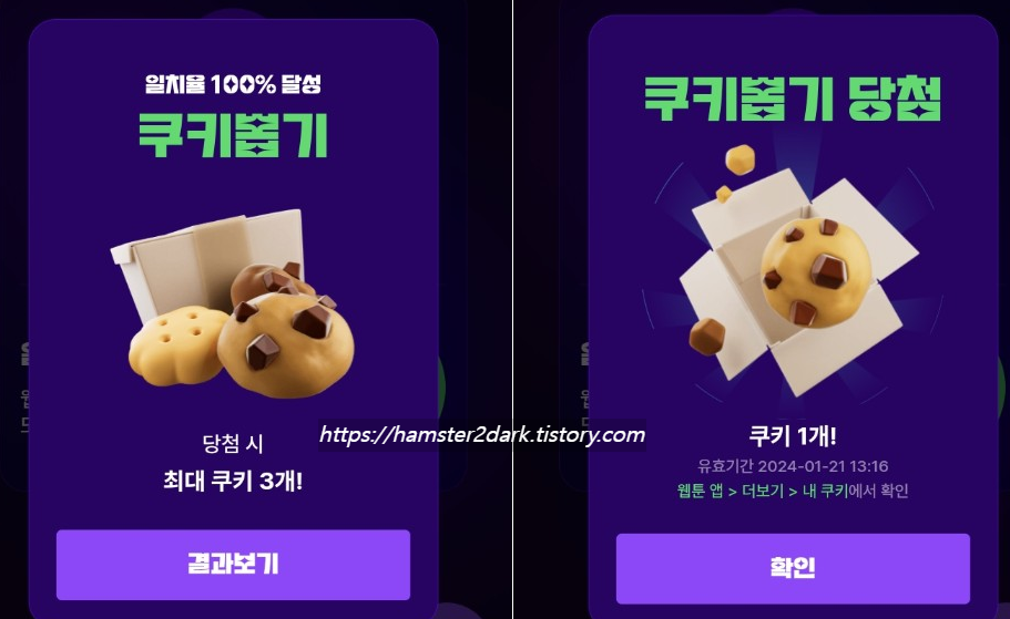 2024.01.04 - [웹툰 매일 봄] - 네이버 웹툰 무료쿠키 얻는법(6) : 내만쿠 자격증 미션 레시피 및 후기(내가 만든 쿠키~ / 전체 레시피 공개)