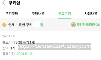 2. 툰스티니 쿠키 얻는 방법 2가지.