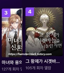 (아래 작품은 한 번 정주행 해서 본 적이 있는 웹툰인데 회차수가 많아 3, 4등으로 나왔다. 지금 내 마음속 1등은 토마토가 돼라인데 ㅠ 순위권에도 없음)