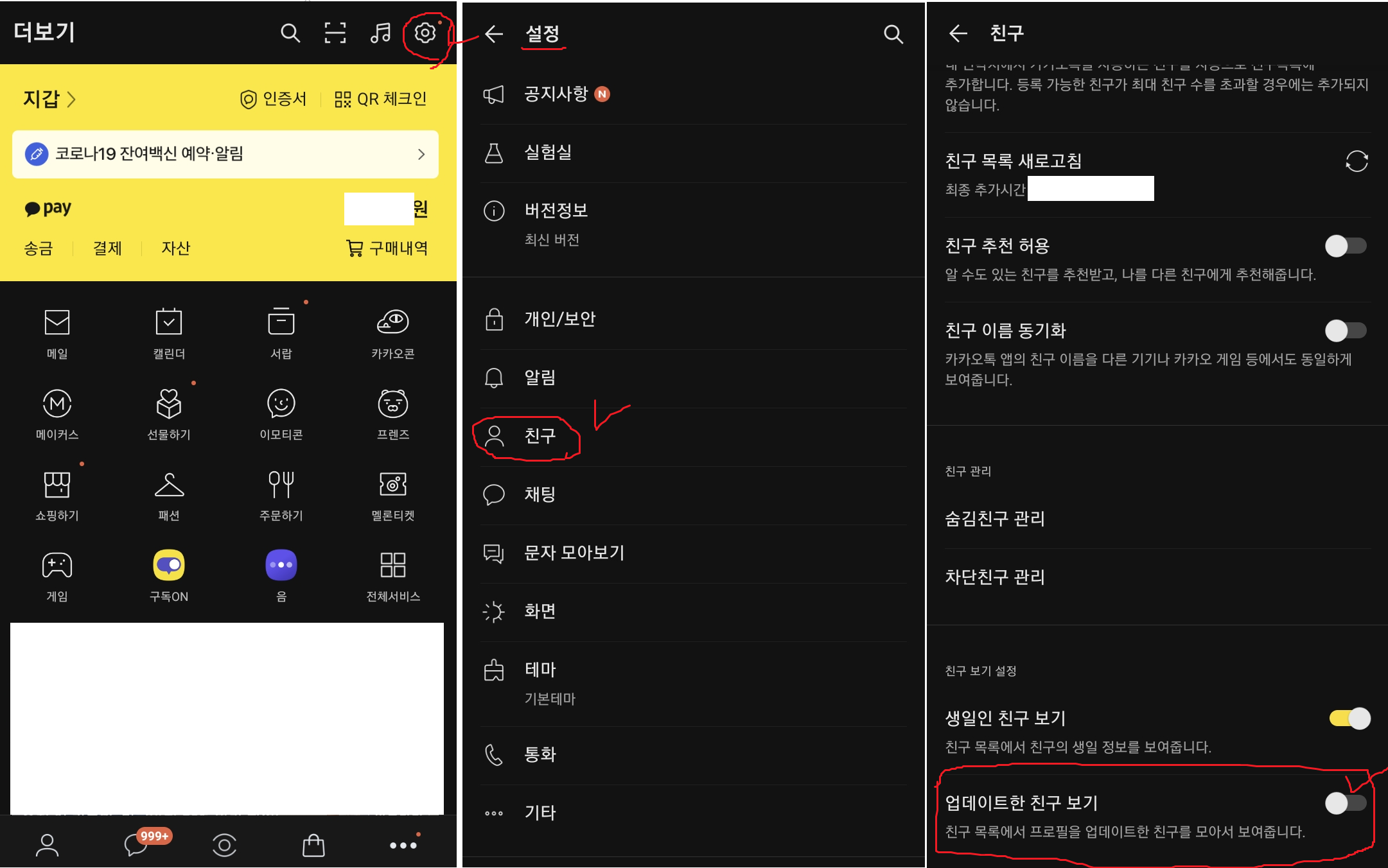 추가적으로 업데이트한 친구 보기 설정은