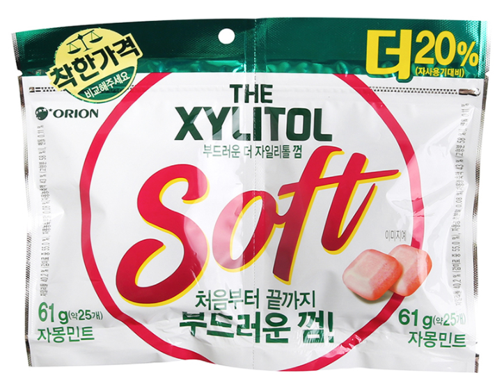 또, 3 가지 맛 자일리톨 껌 제품과 달리 부드럽게 씹힌다.