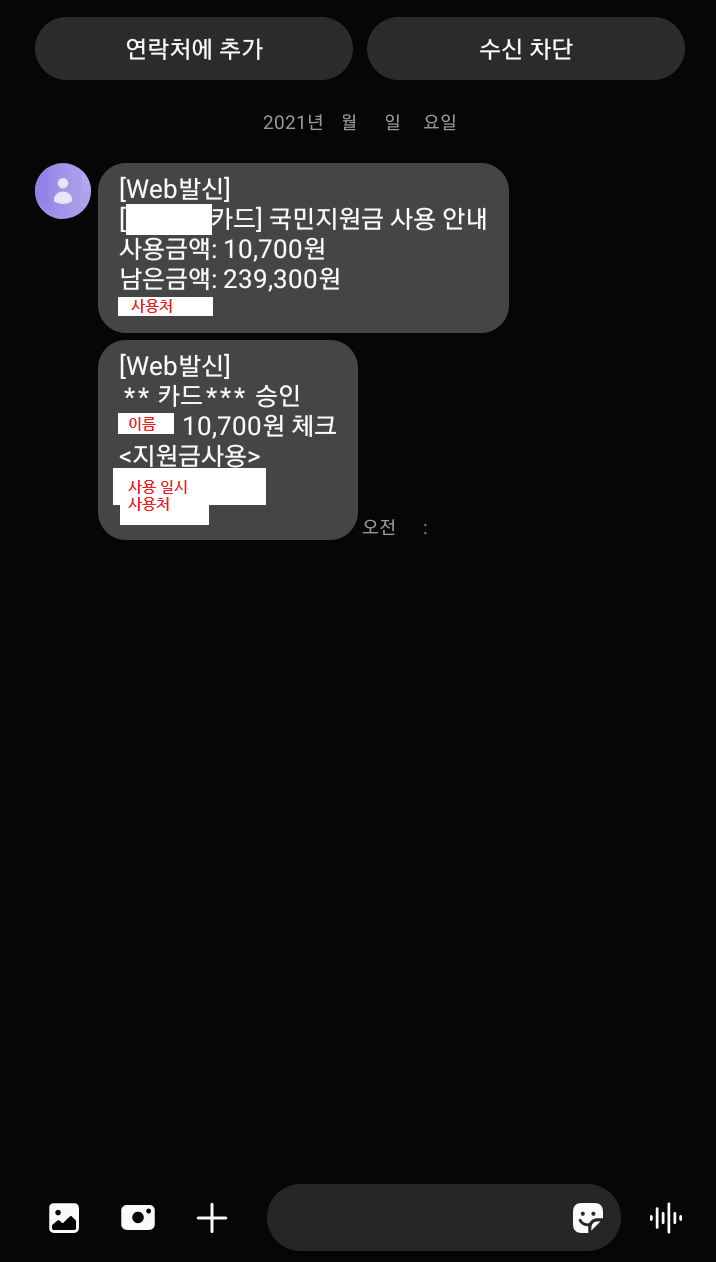 신청 다음날 국민지원금이 입금되었다는 안내 메세지를 받았는데