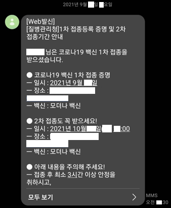 그 결과 화이자 또는 모더나 백신에서 '모더나' 백신으로 결정됐고 접종했다.