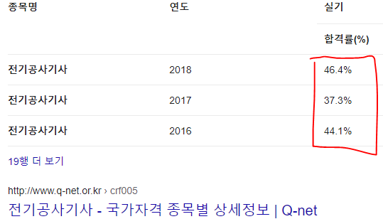 전기기사가 보통 10%대 였던걸 생각하면 (쉬울때 전기공사기사 수준으로 나온다) 할 만하다.