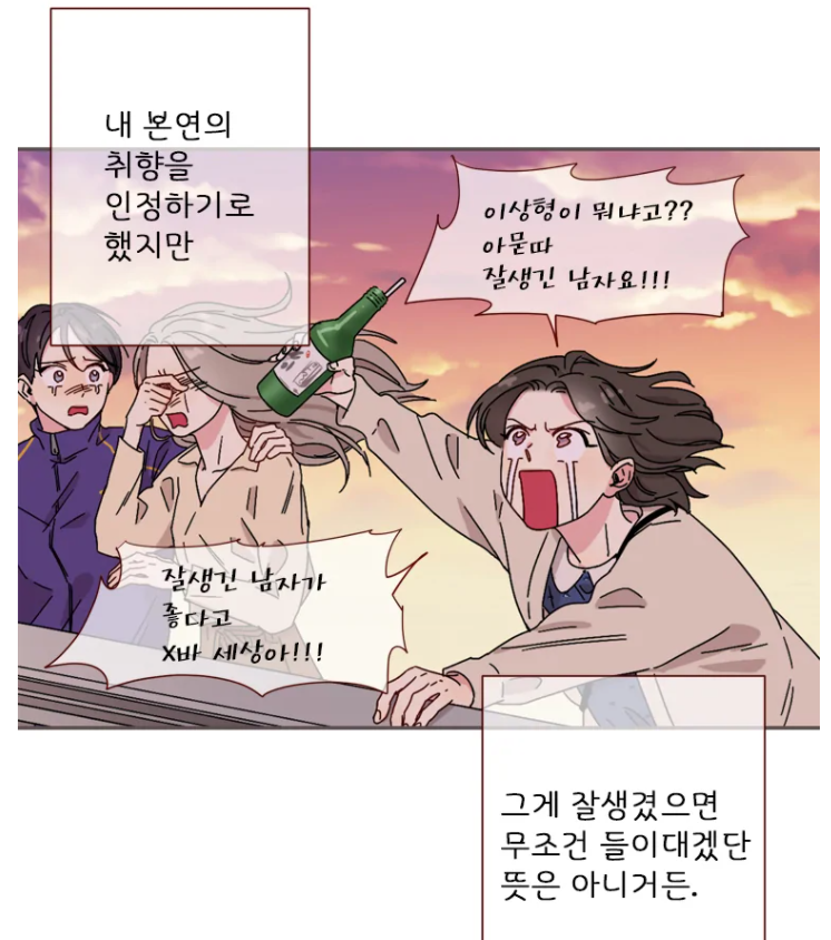 첫남친이 무던히도 끔찍했던 탓에... 독자들은 남친 후보들에게서도 얼굴은 멀쩡한데 성격이 쓰레기일지도 몰라...와 같은 의심을 끊을 수가 없다. 그래서 연애가 현실적이면서도 판타지(얼굴)인 로맨스물이다.