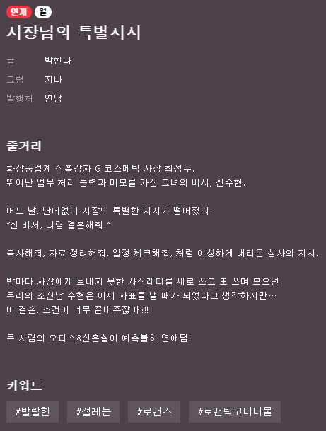 5. 사장님의 특별지시 - 박한나, 지나 - 카카오 웹툰(연재중)